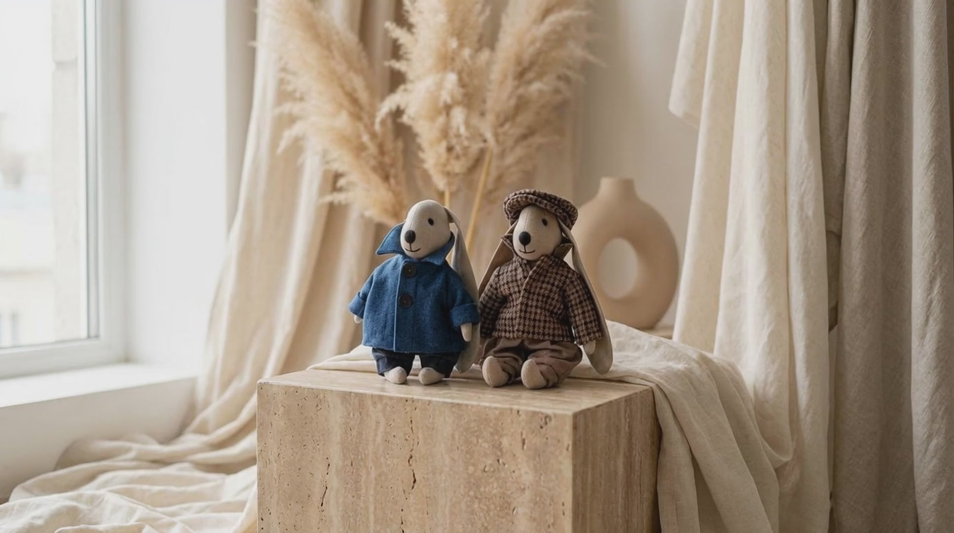 Triušiukas Teodoras – tai rankų darbo pasiūtas lininis triušiukas, spinduliuojantis ramybe, jaukumu ir laikui nepavaldžia elegancija. Jo subtilus, klasikinio stiliaus drabužėlis suteikia išskirtinumo ir paverčia jį ne tik žaislu, bet ir miela interjero detale.